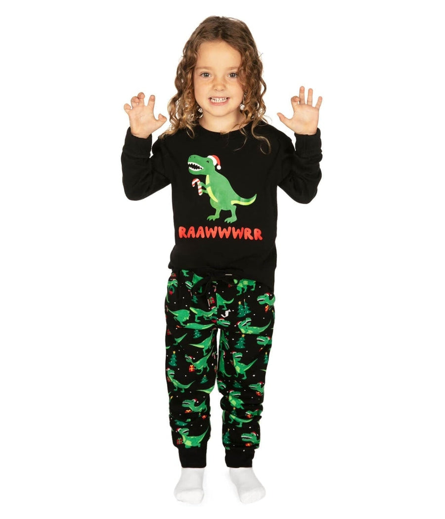 Roar into Christmas Fun Get your little girl excited for bedtime with the Girl's Rawr Dinosaur Crew Neck Pajama Set....