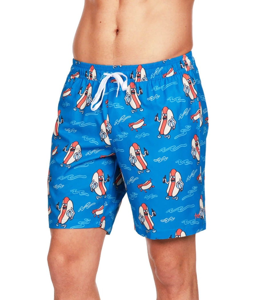 Dive into fun with our Hot Dog Diver Stretch Swim Trunks, designed for those who love to make a statement at the beach. Featuring a playful hot dog print, these trunks are perfect for summer fun and poolside lounging.