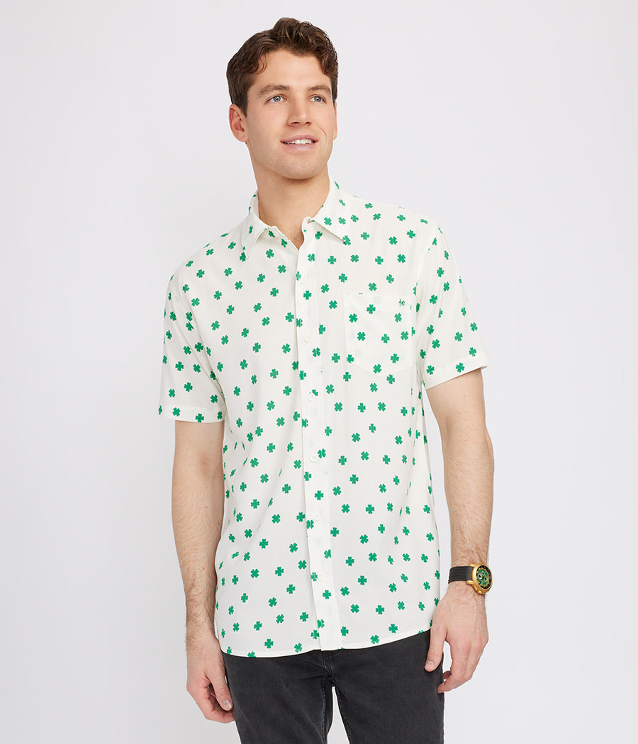 Men's White Crushin' Clovers Button Down Shirt