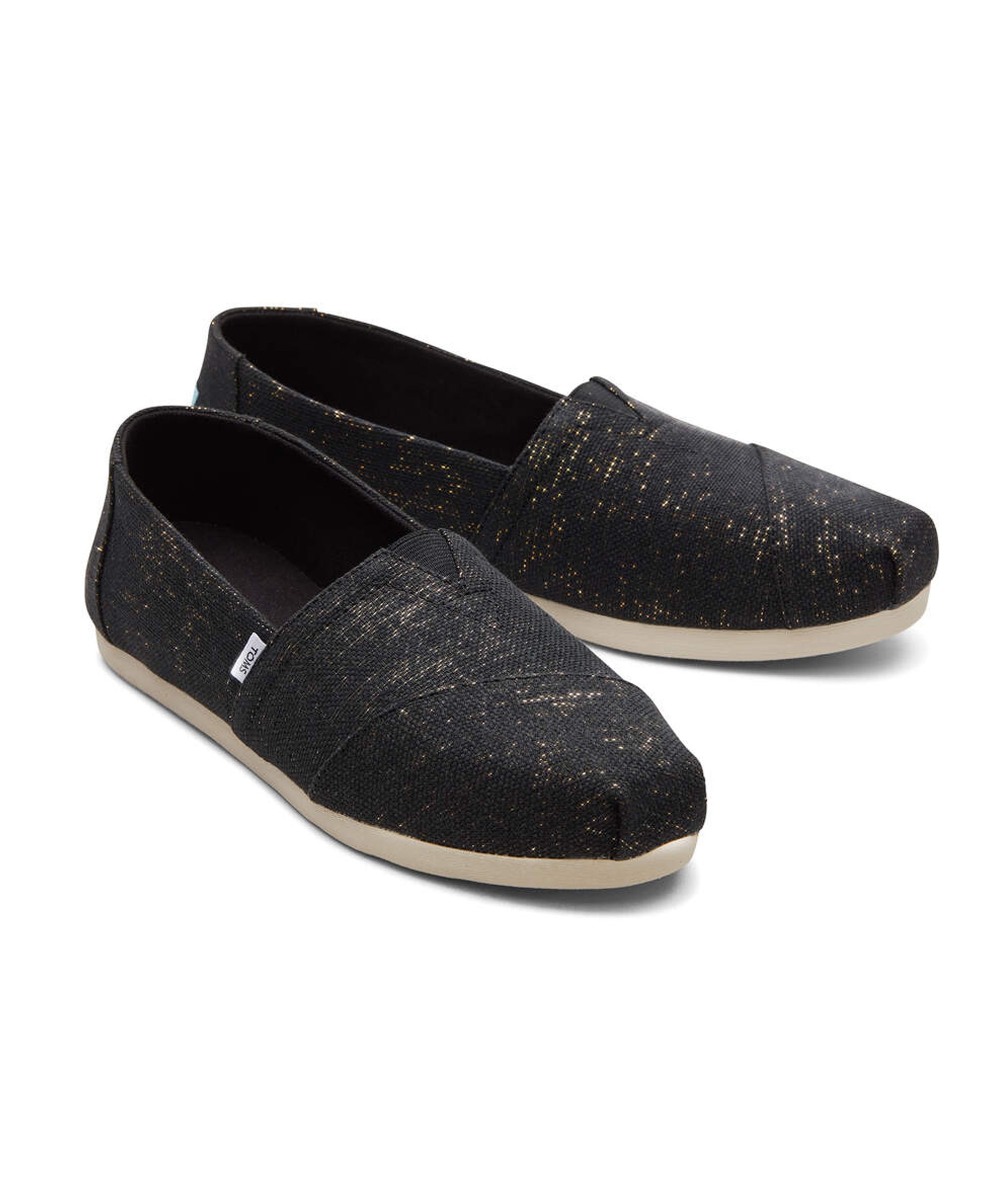 Elevate your footwear game with the Black Metallic Linen Alpargata Slippers by TOMS, designed for those who appreciate a touch of glam in their everyday comfort. These stylish slippers offer a perfect solution for transitioning from home to outings with ease.