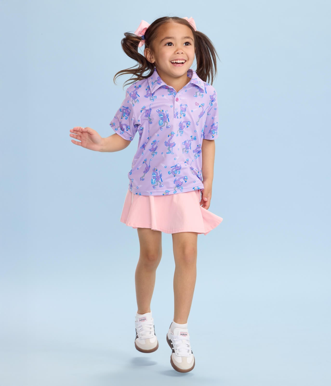 Perfect for the young golfer who loves to express her personality, the flamingo pattern adds a fun twist to her wardrobe. Equip her with this polo and watch her confidence soar as she plays and practices her swing!