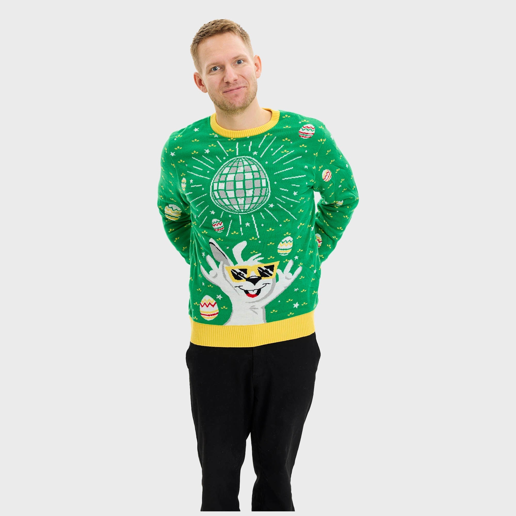 Grüner Disco-Osterpullover – Herrenversion