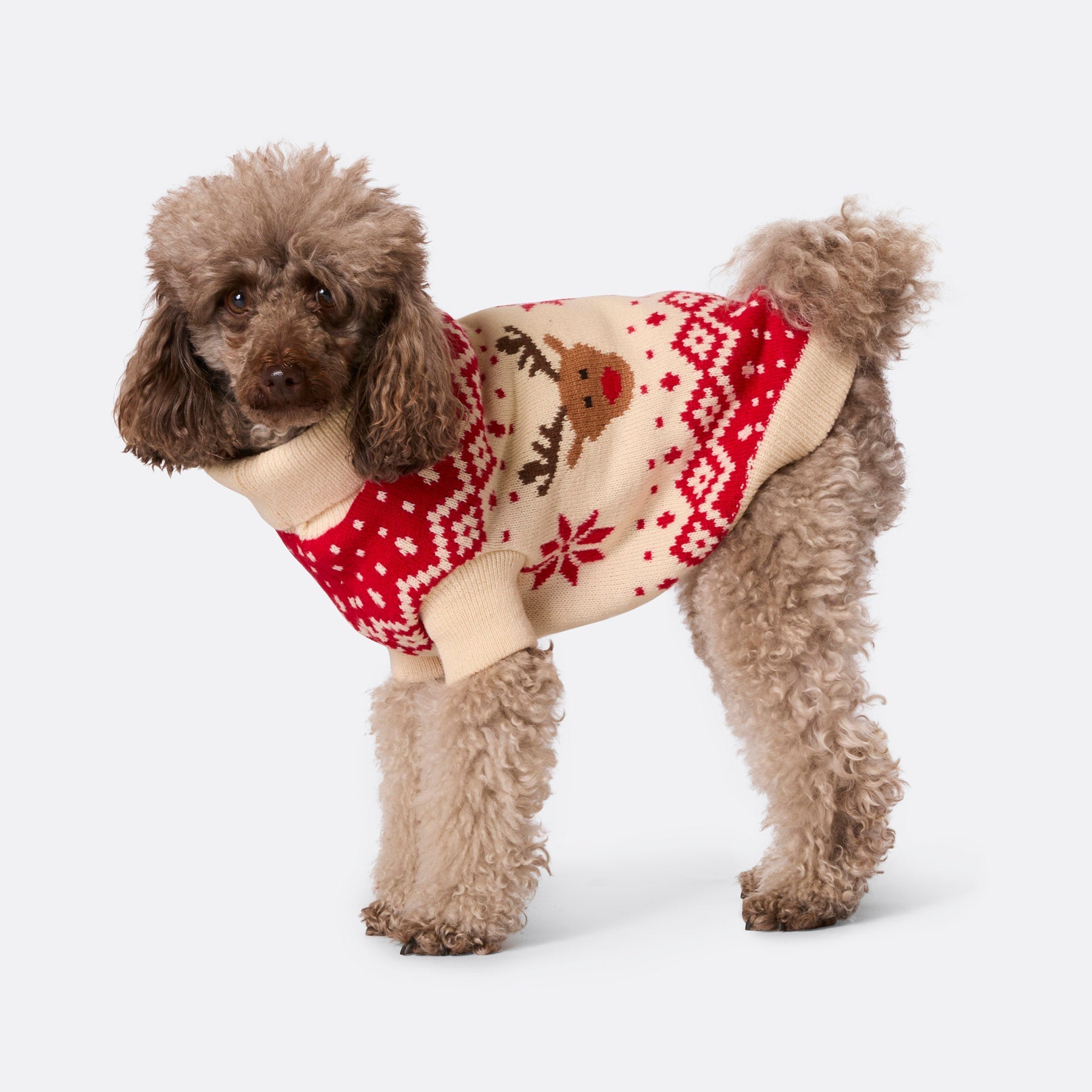 Roter Retro-Weihnachtspullover mit Rentiermotiv für Hunde