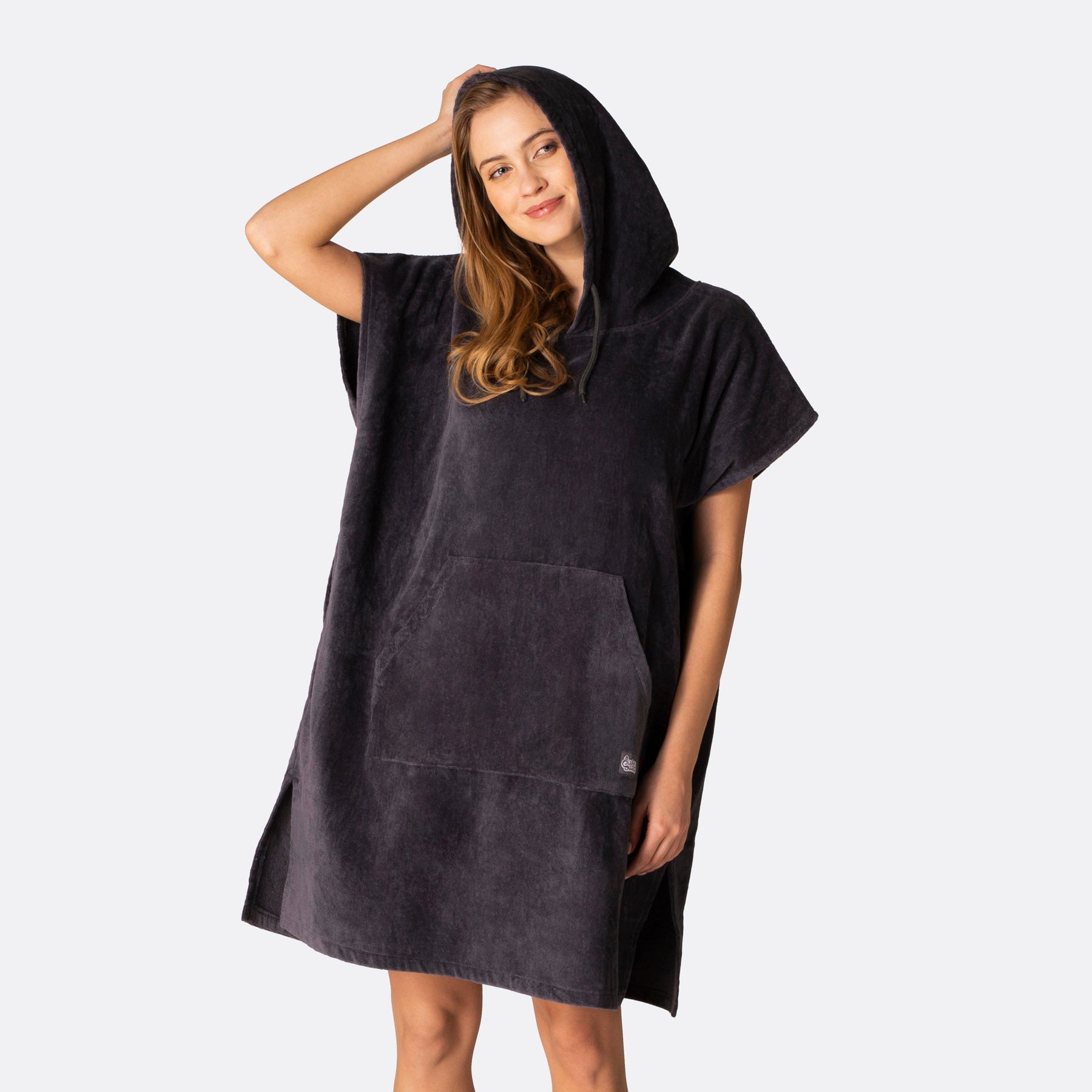 Anthrazitgrauer Frotteeponcho für Erwachsene | Vielseitige Sommerbekleidung