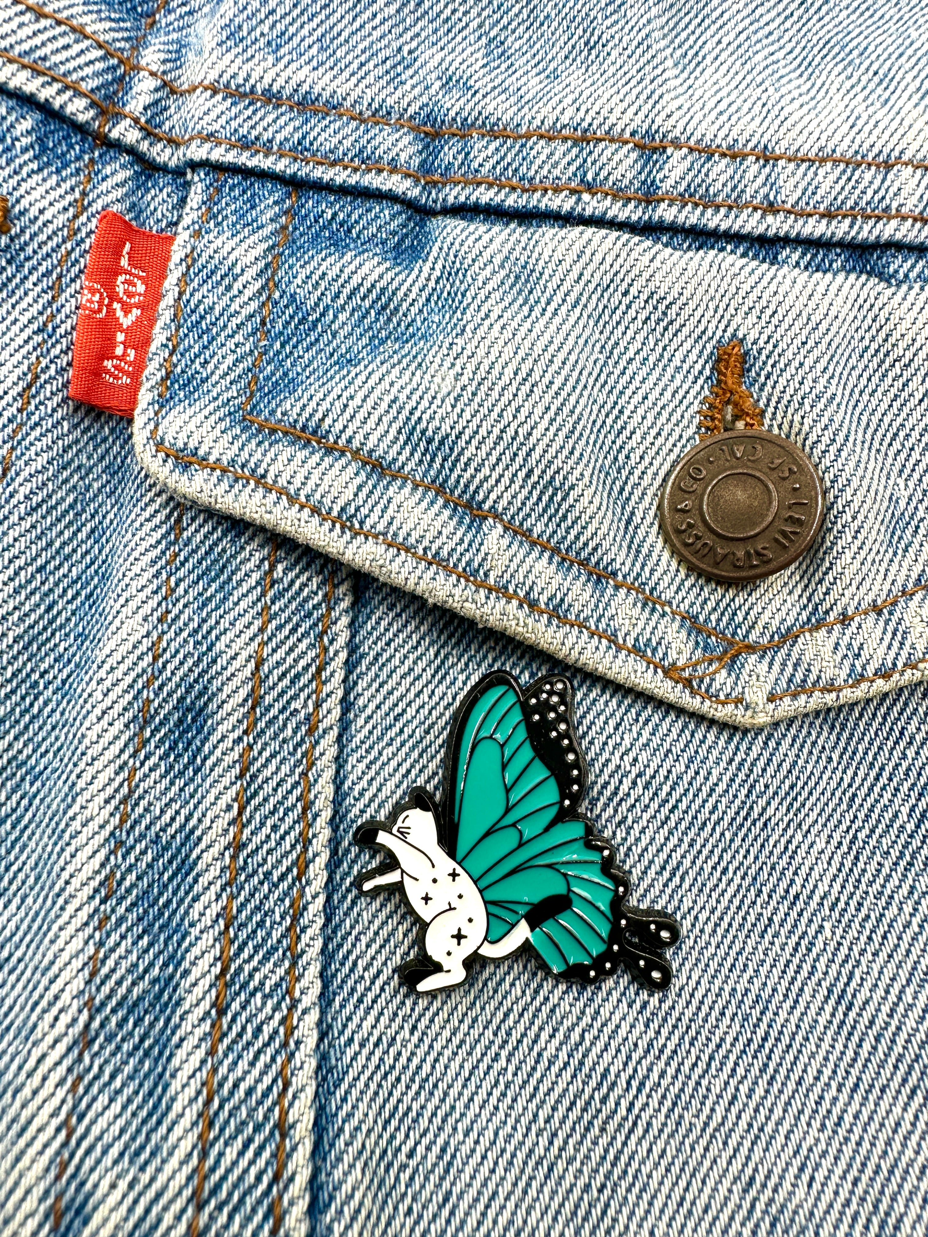 Cat Butterfly II Pin - Whimsical Gift for Cat Lovers