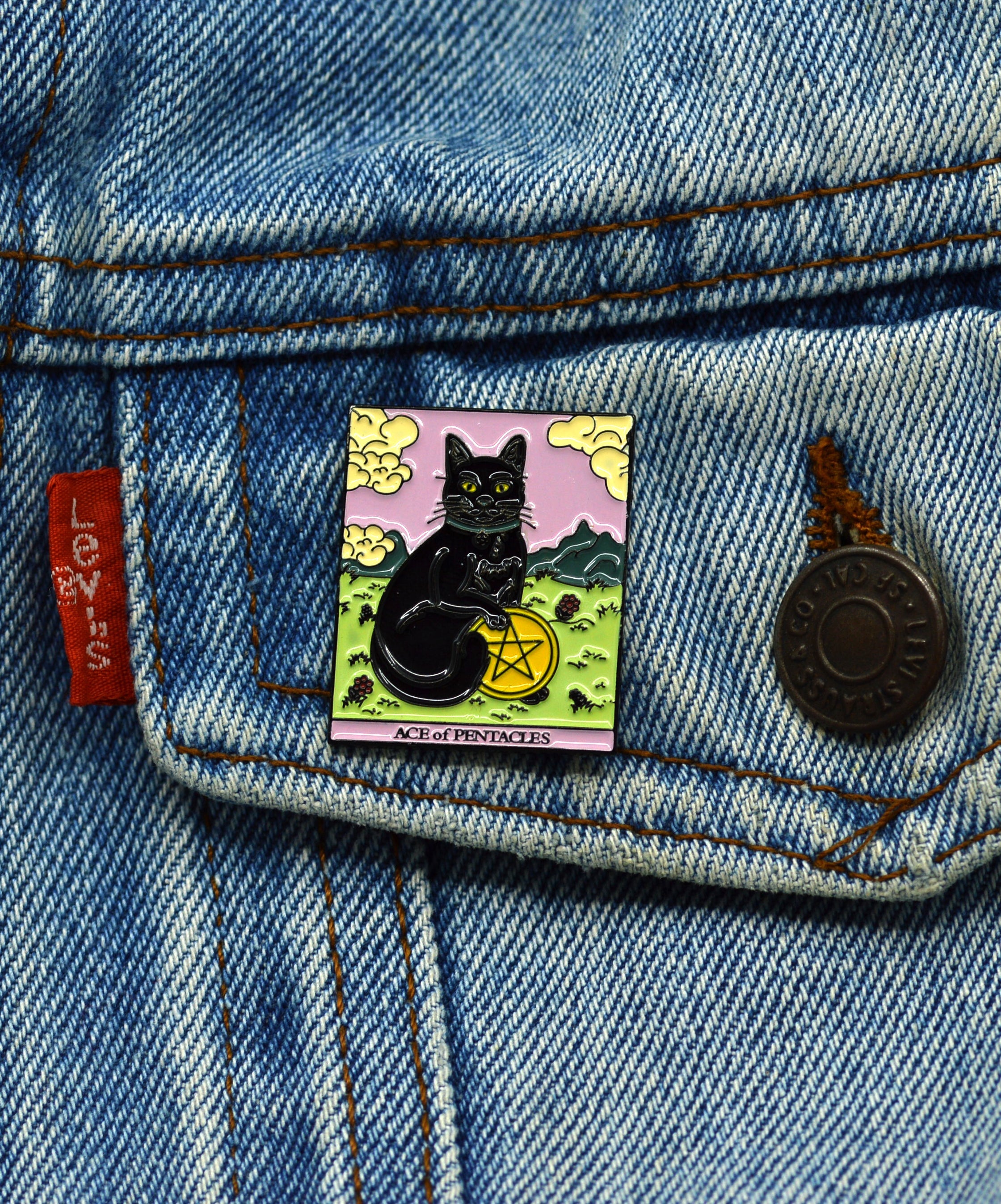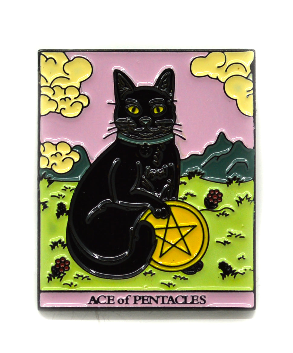 Katzen-Tarot-Anstecknadel – Ass der Münzen – Halloween-Accessoire