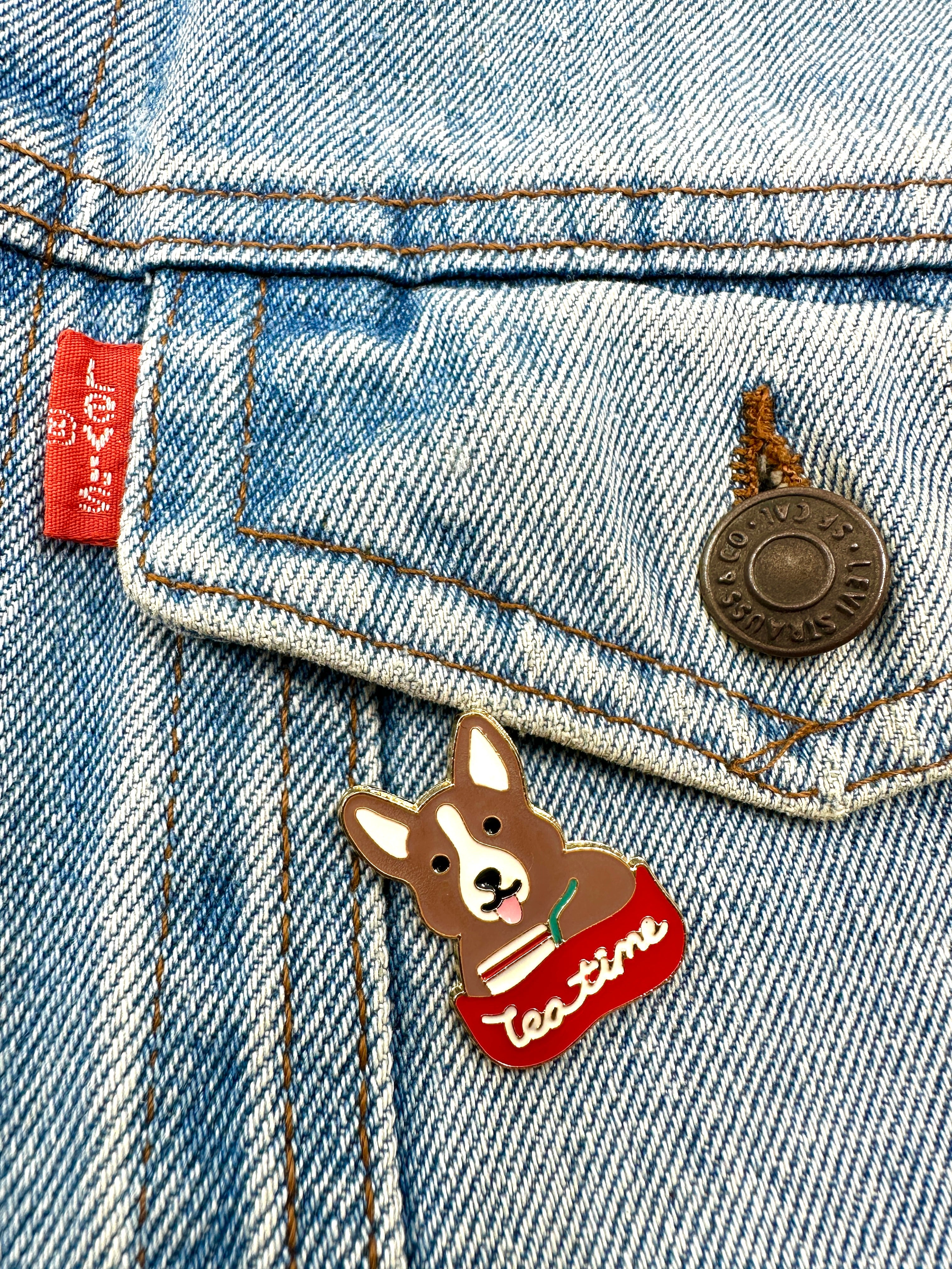Anstecknadel „Teestunde mit Corgi“ | Kategorien: Accessoires