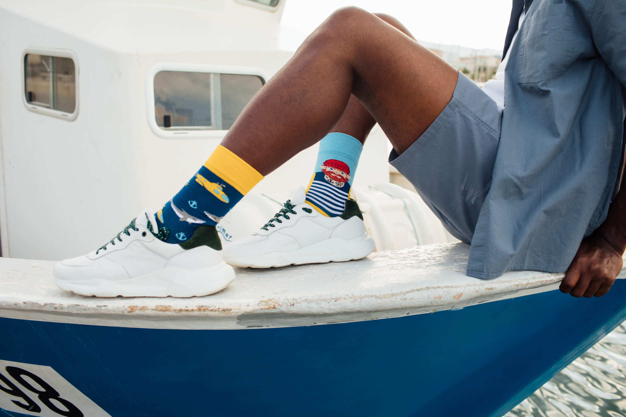 Schnapp dir den Trend „Die Geschichte vom Fischer“. Die Socken „Fisher's Tale“ von Many Mornings verleihen Ihrem Alltagsoutfit eine verspielte...