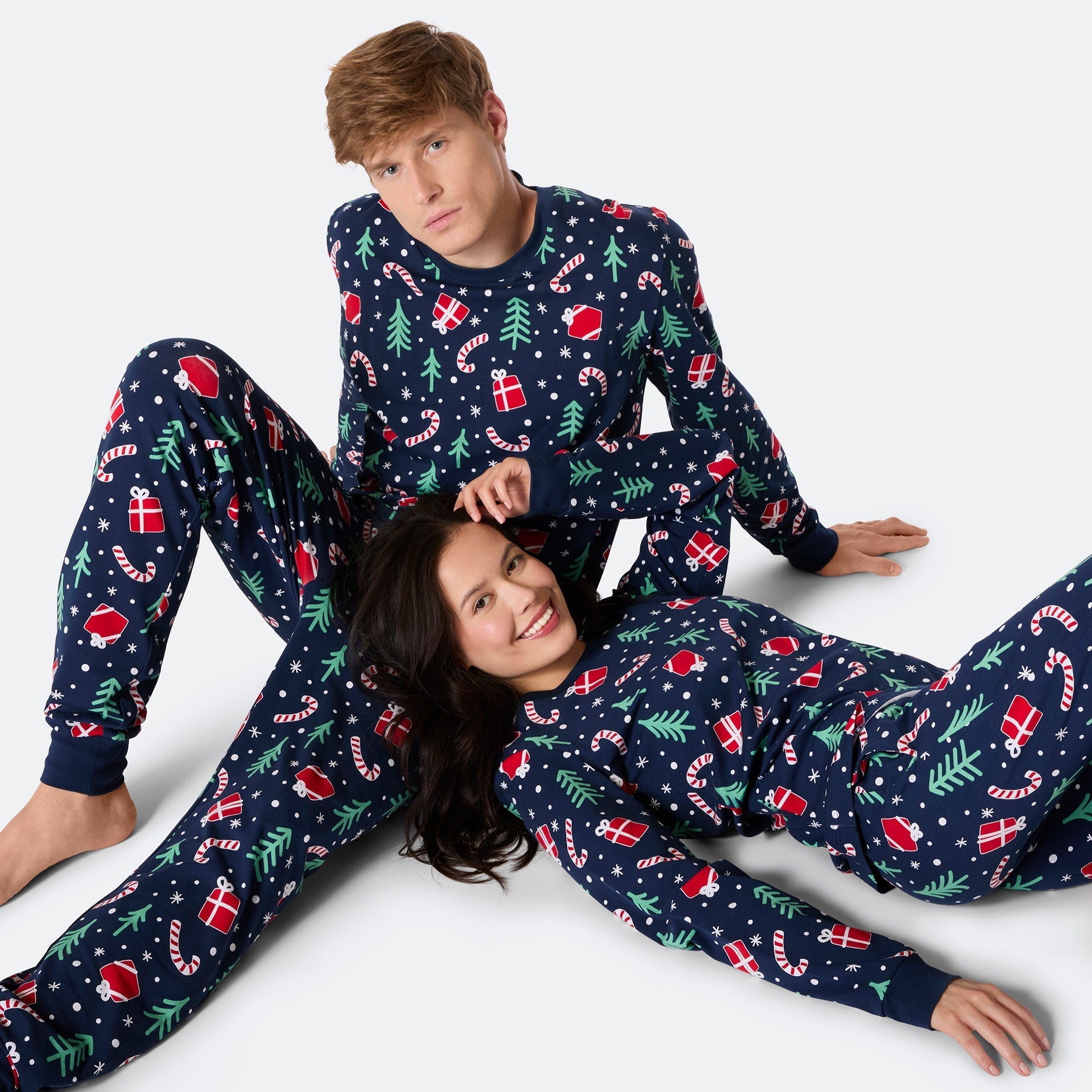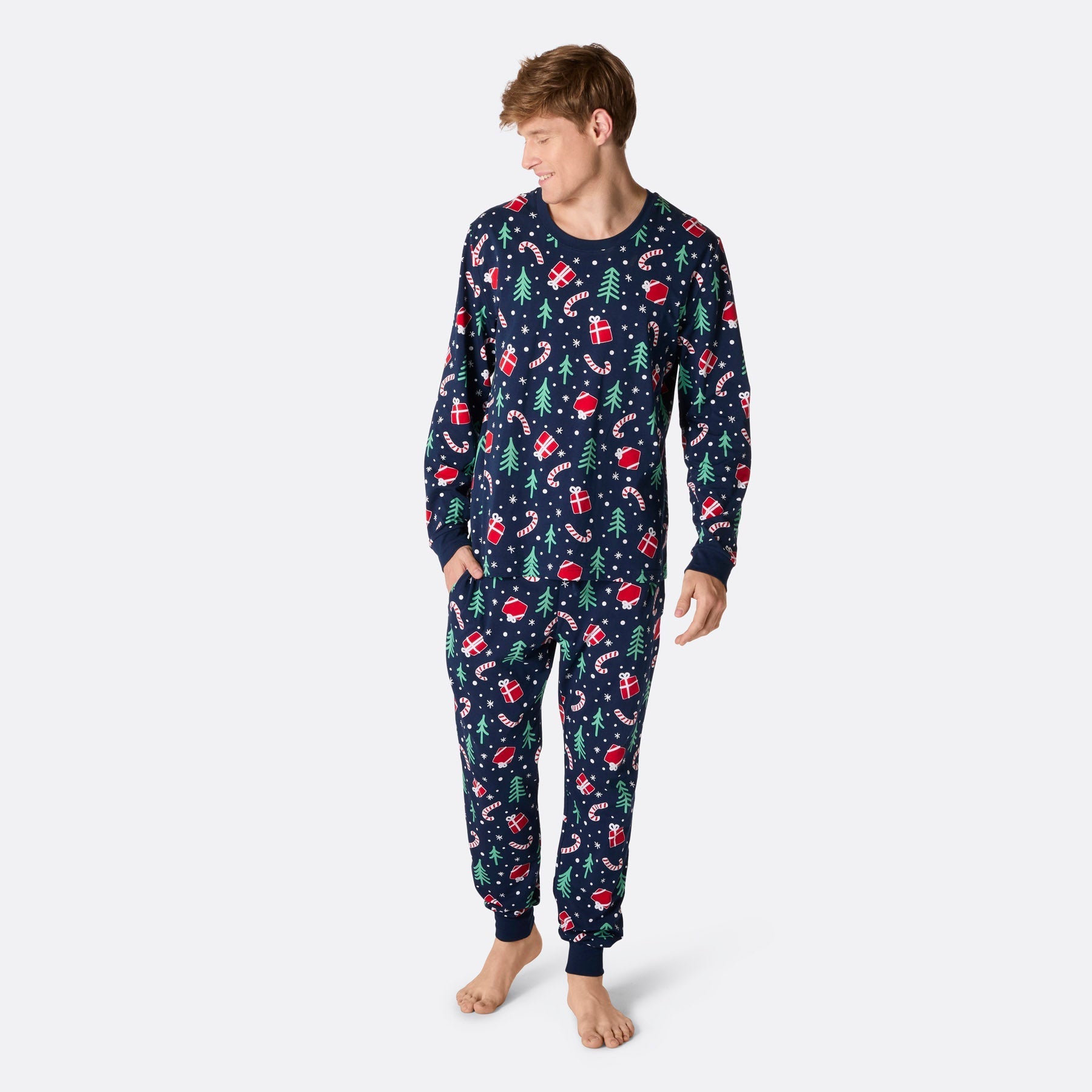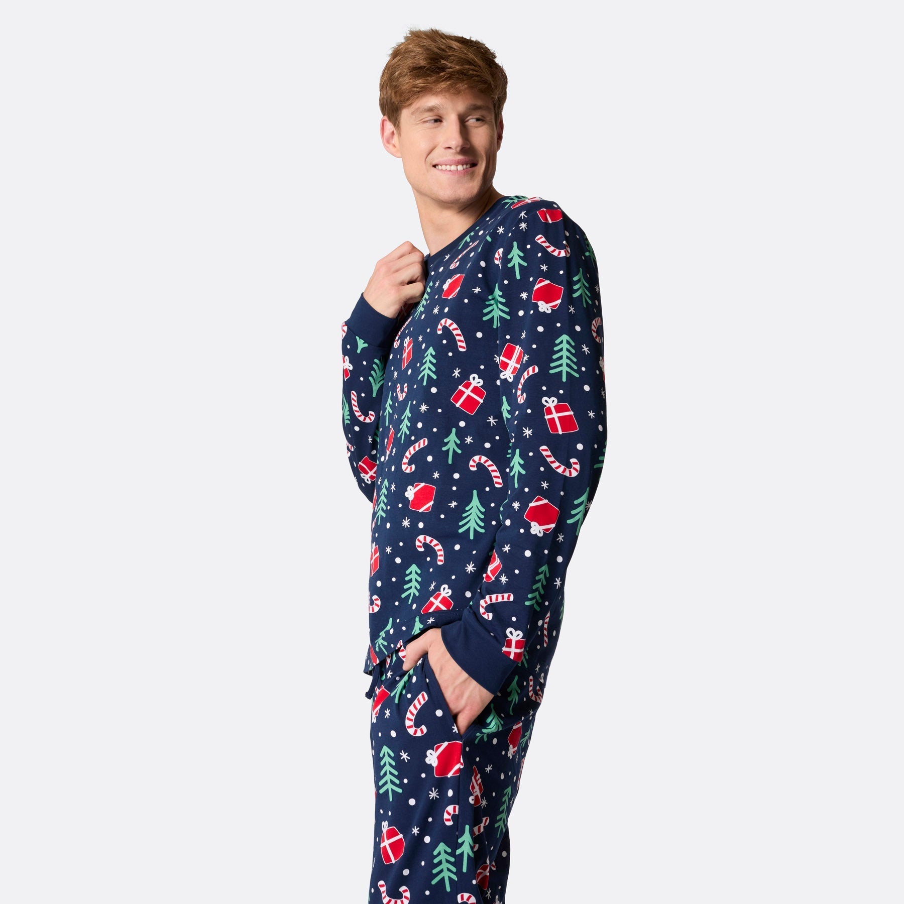 Herrenpyjama mit blauem Weihnachtsmuster für festliche Nächte
