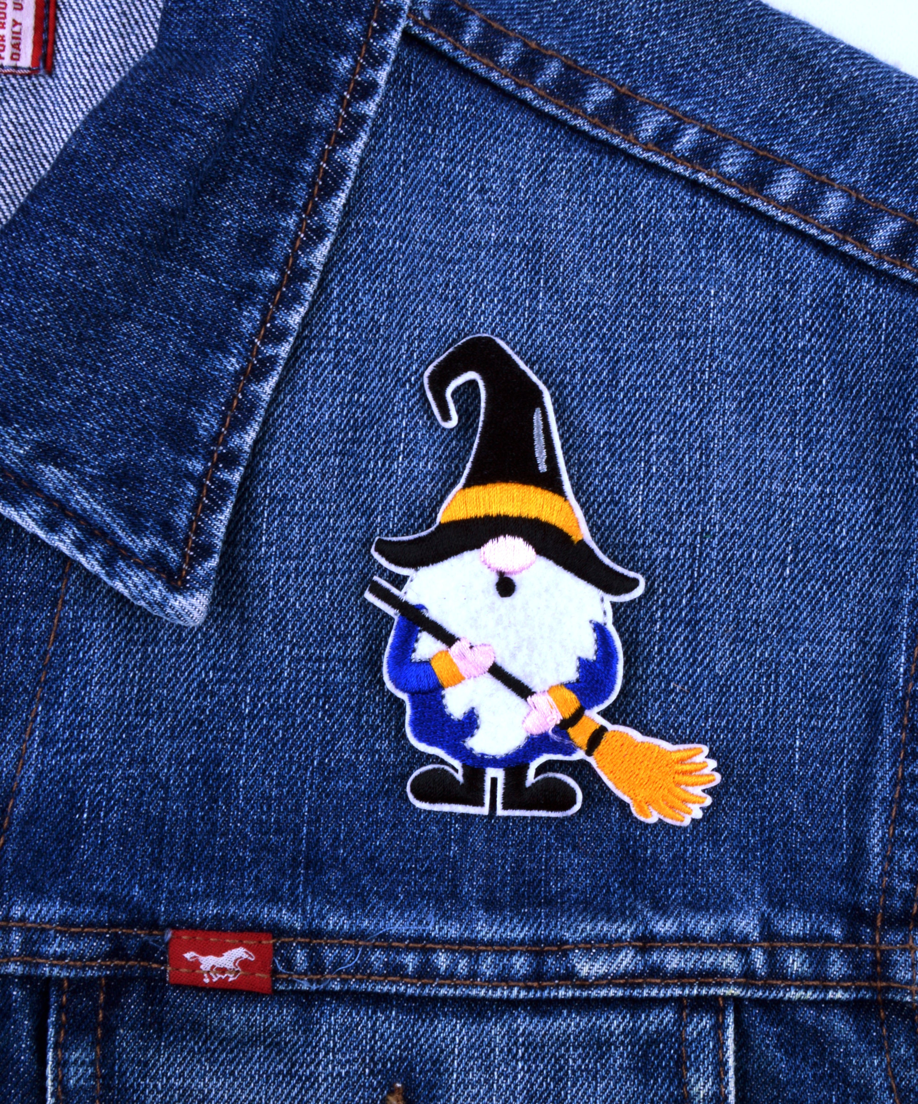 Aufbügelbarer Aufnäher – Gartenzwerg mit Besen