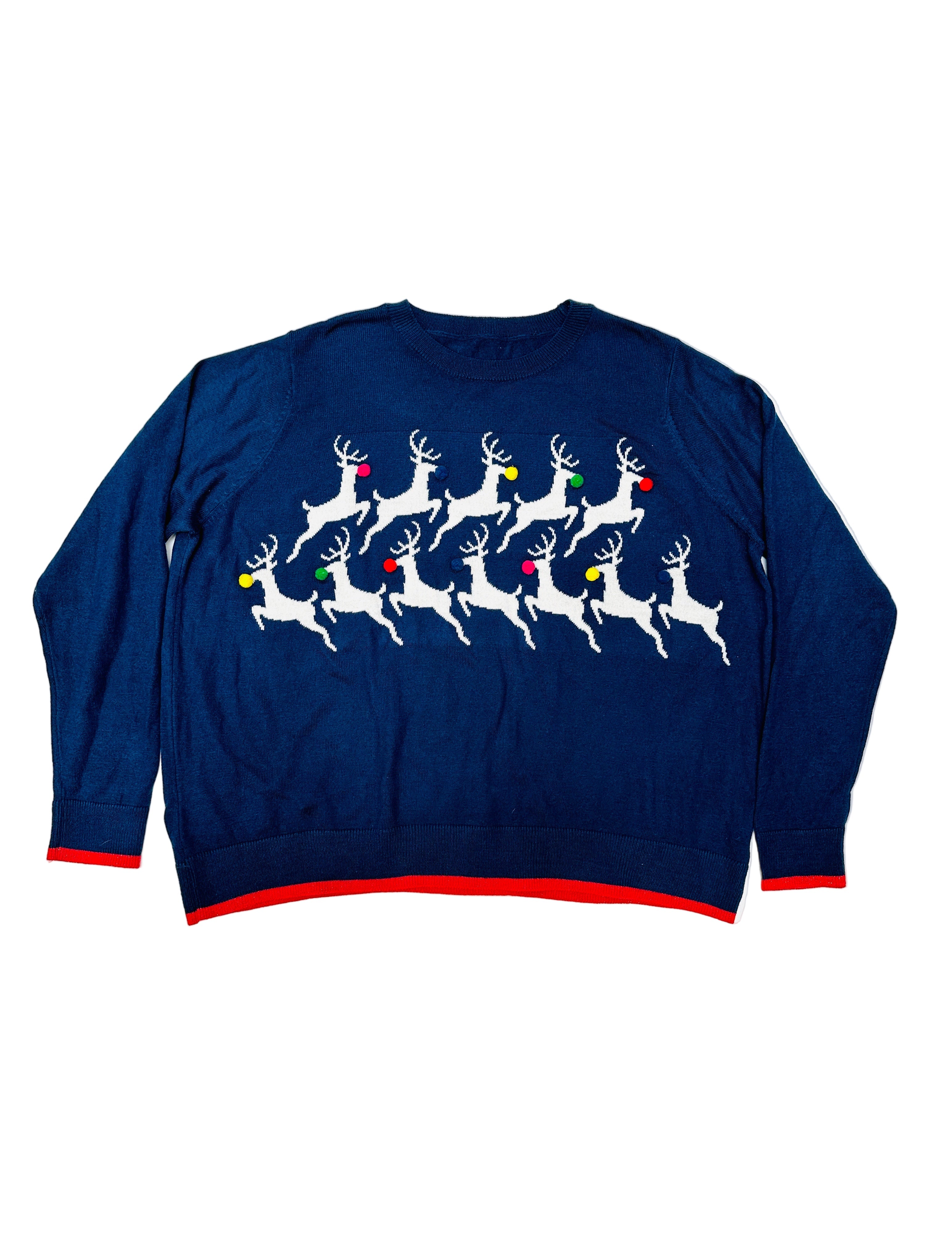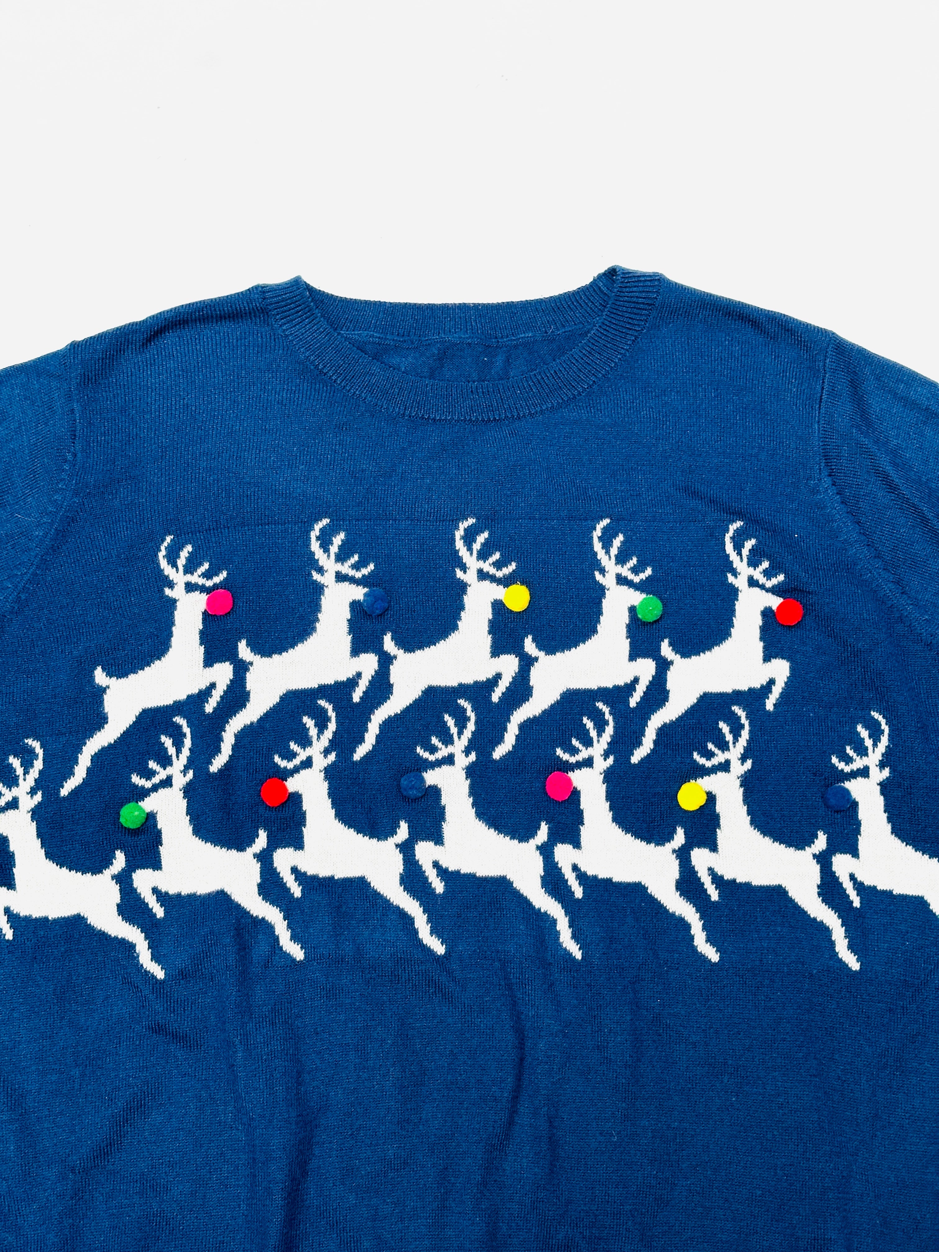 Entfessle Vintage-Vibes Kommen Sie in Weihnachtsstimmung mit unserem Vintage-Weihnachtspullover mit springenden Rentieren. Dieses einzigartige Stück versprüht einen Hauch von Nostalgie...
