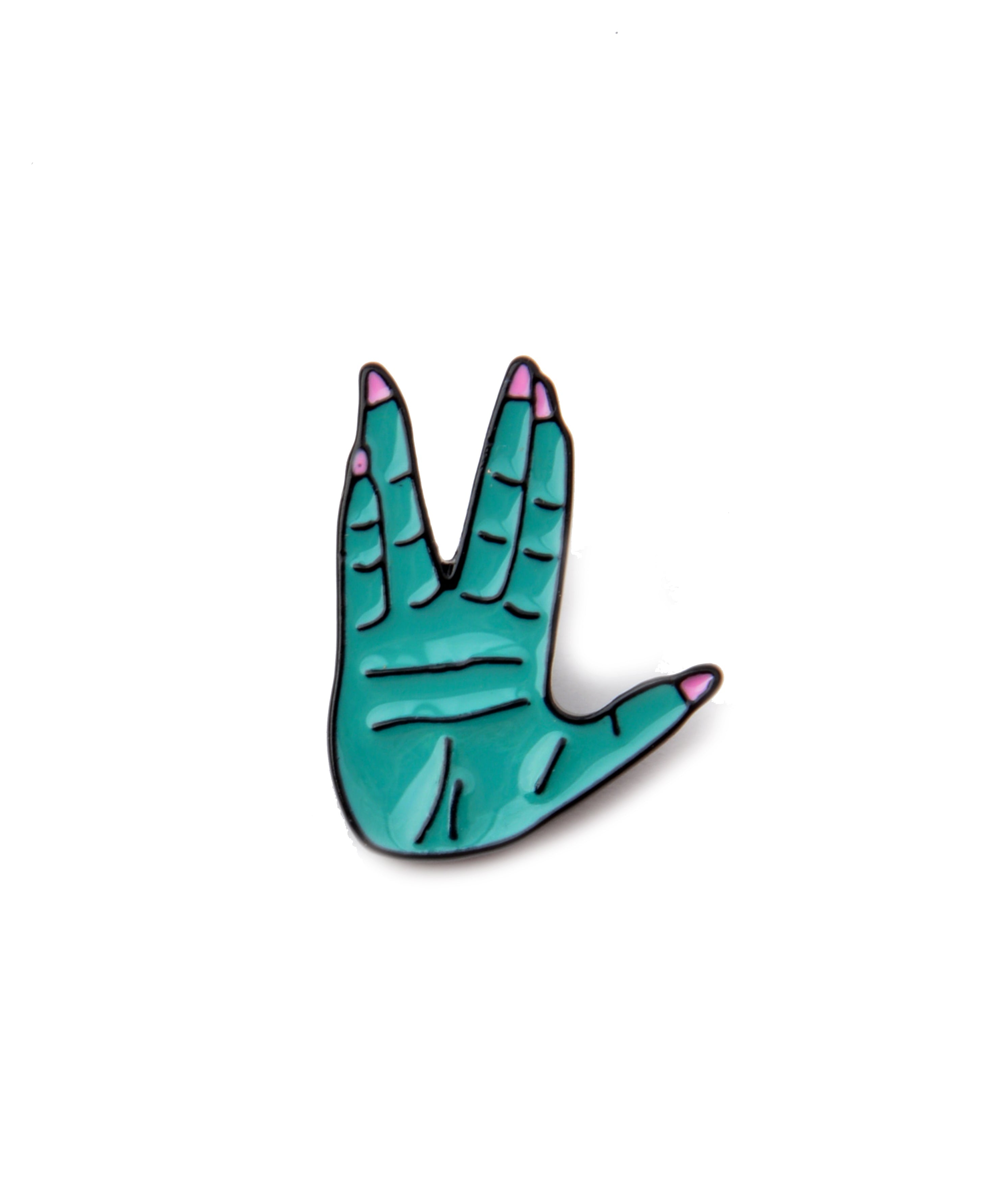 Anstecknadel mit vulkanischem Gruß