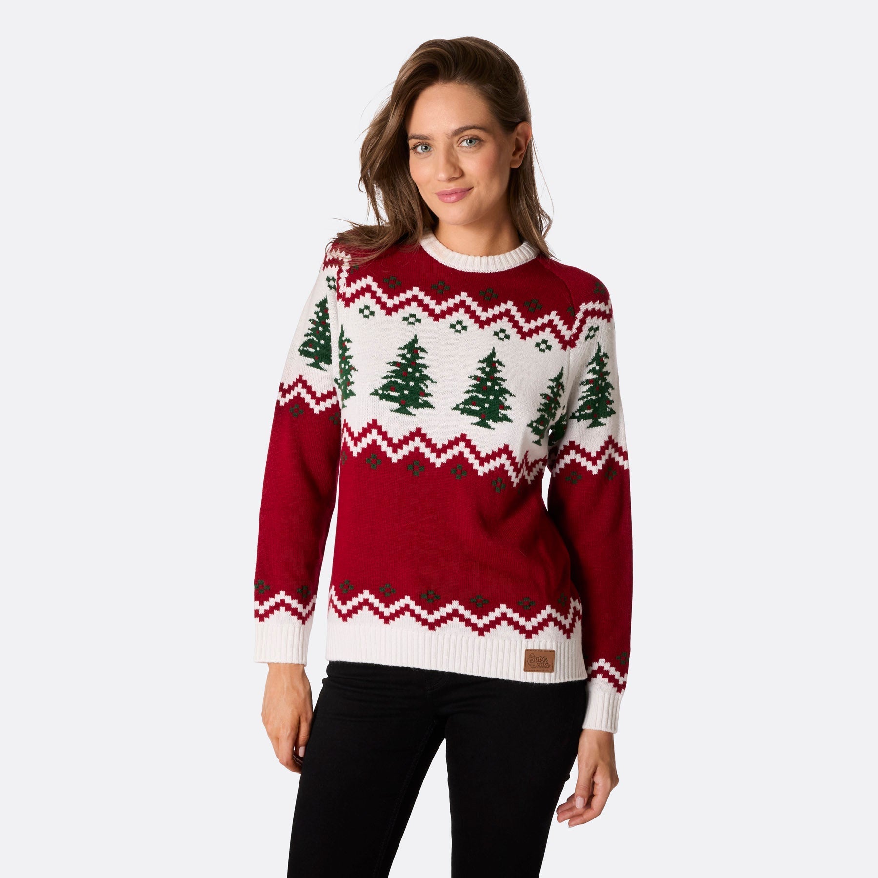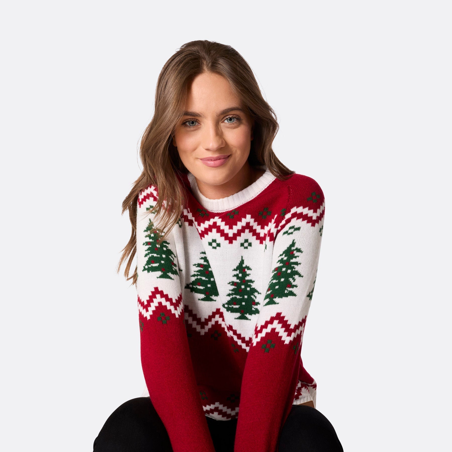 Damen-Weihnachtspullover im Retro-Stil mit Weihnachtsbaummotiv