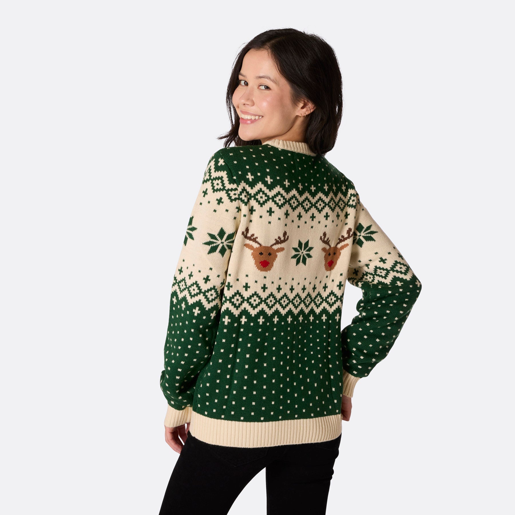 Damen-Retro-Weihnachtspullover mit Rentiermotiv in Grün
